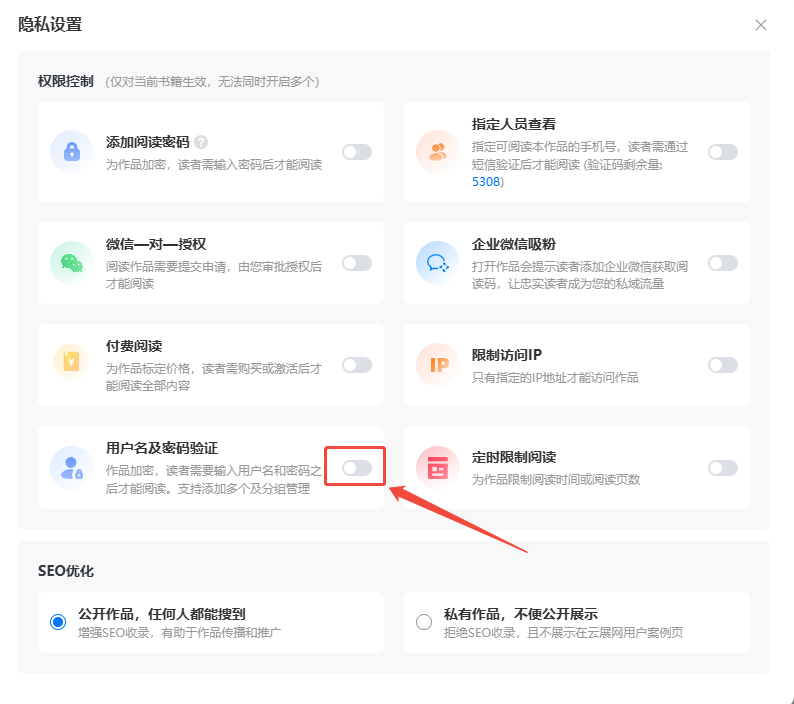 打開【啟用】,點擊【確定】,讀者便需要輸入正確的用戶名和密碼才能觀看書本。