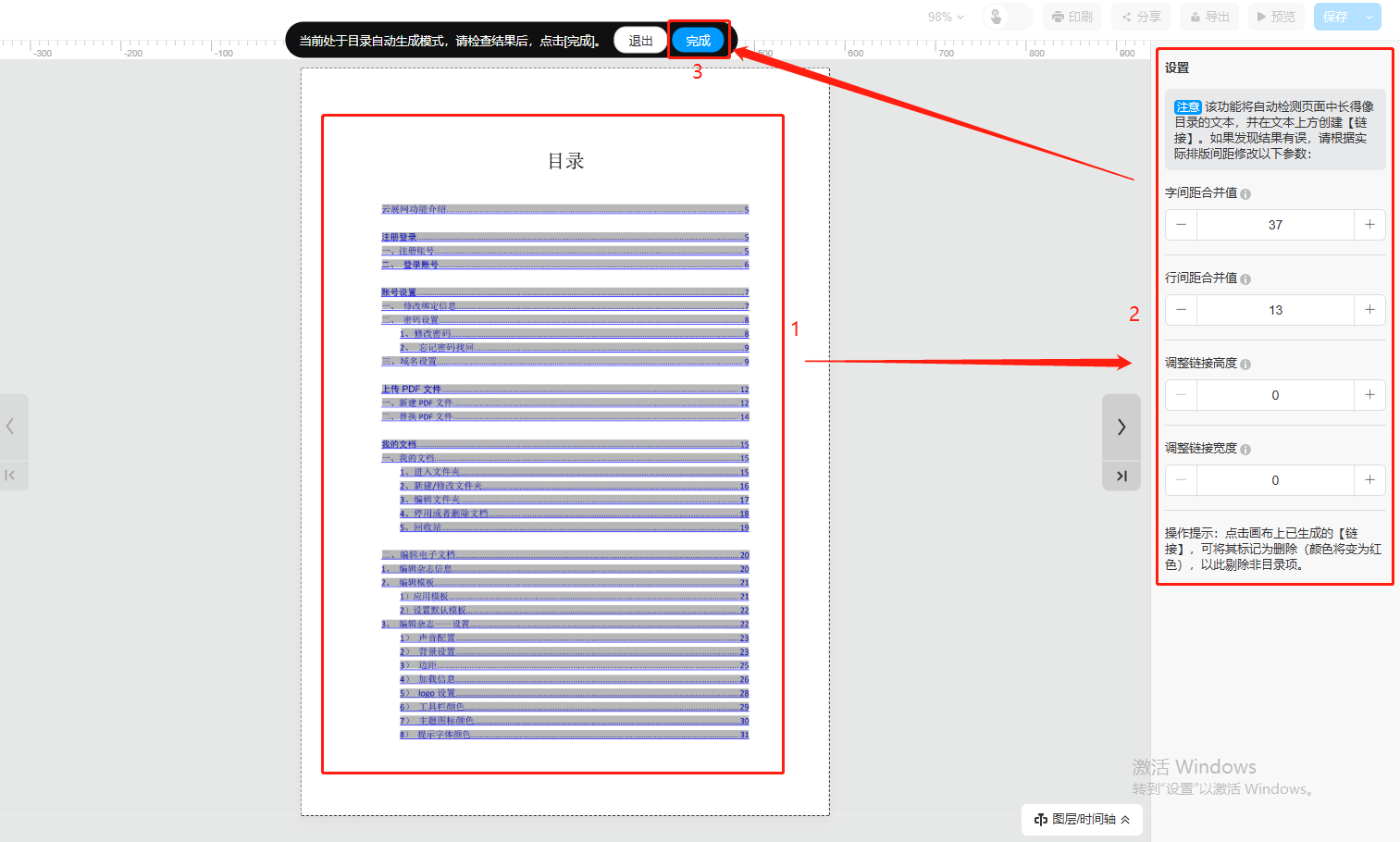 生成超鏈接之后,在右側(cè)調(diào)整參數(shù),調(diào)整到自己滿意之后,點(diǎn)擊上方【完成】即可。