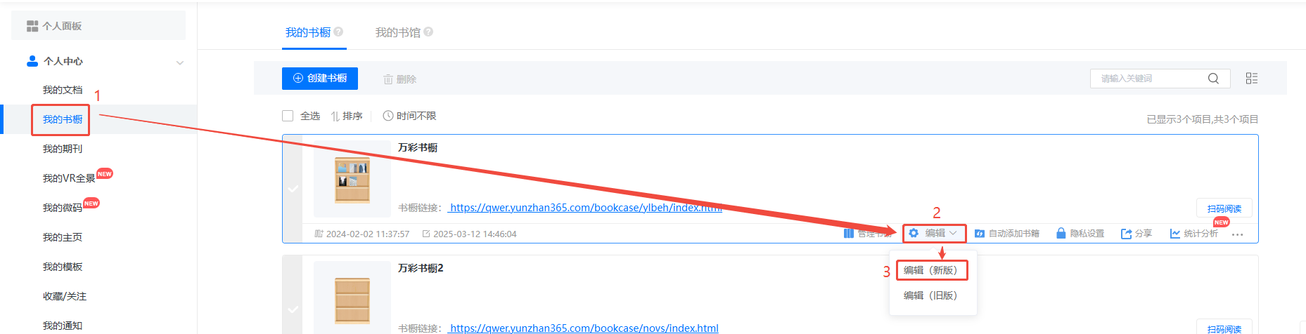2、打開書櫥的新版編輯界面