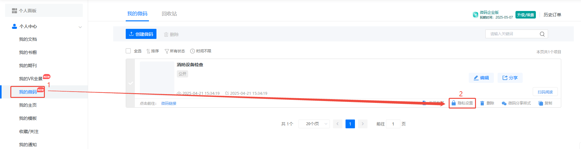 點擊【我的微碼】,選擇需要設(shè)置密碼的微碼,點擊【隱私設(shè)置】,打開【限制訪問IP】。