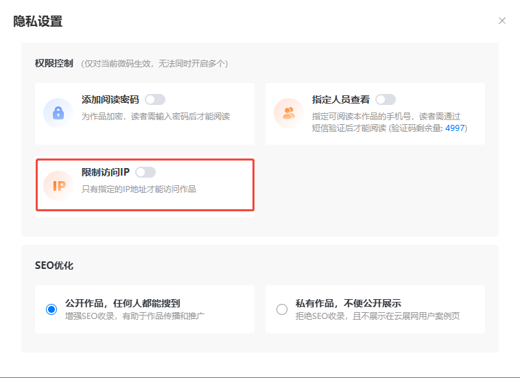 此功能可以給微碼設(shè)置IP白名單,只有讀者的網(wǎng)絡(luò)IP地址在白名單內(nèi)才可以觀看微碼。
