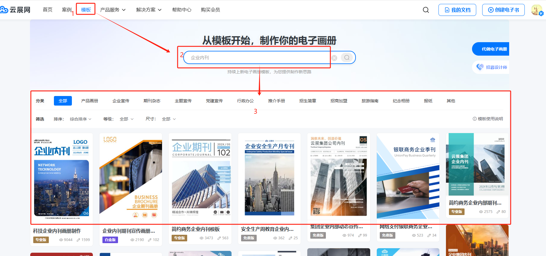 (1)在【模板】頁面,檢索關(guān)鍵詞選擇一款心儀的模板,點擊【立即使用】
