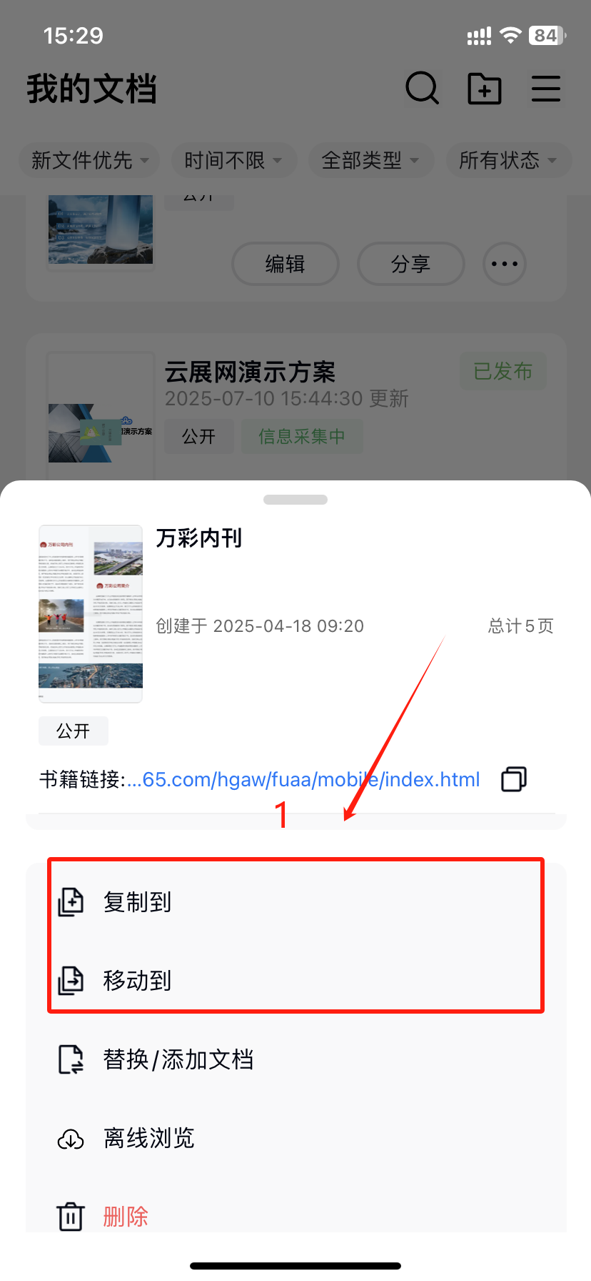 在【作品】頁(yè)面,找到需要復(fù)制/移動(dòng)的書本,點(diǎn)擊三個(gè)點(diǎn)【…】打開