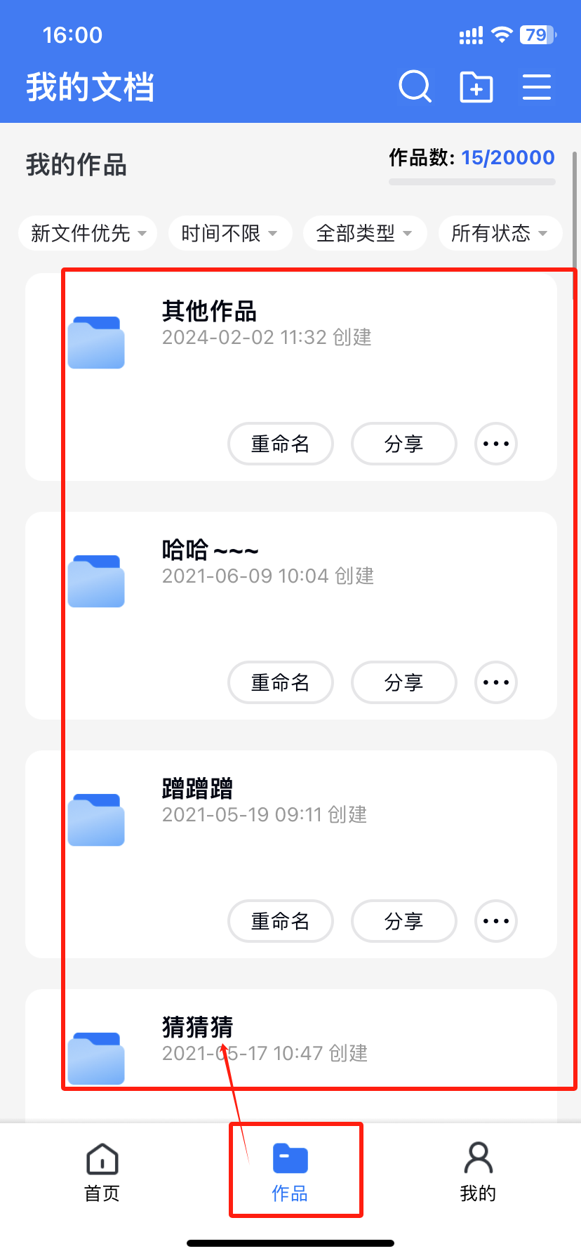 在【作品】頁(yè)面點(diǎn)擊您選擇的文件夾進(jìn)入后可以找到書本
