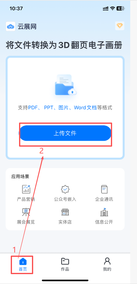 在【首頁】,點(diǎn)擊【上傳文件】