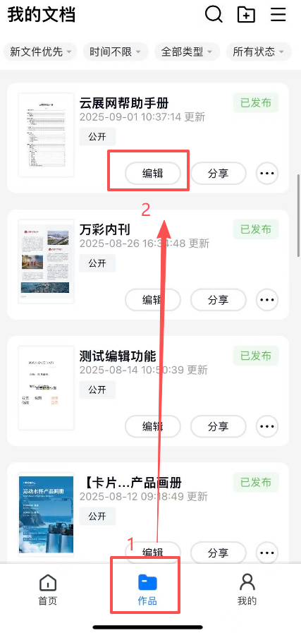 在【作品】頁面,點(diǎn)擊【編輯】打開