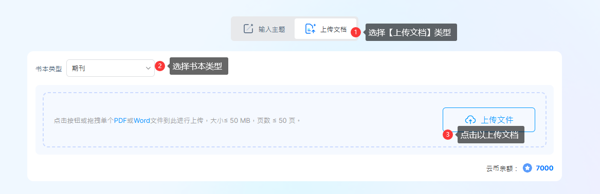 (1) 點擊【上傳文件】→ 選擇【書籍類型】→ 點擊【上傳文件】或?qū)⑽募先肷蟼骺?/p>