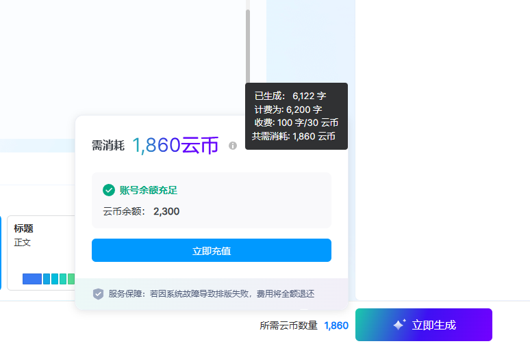 • 示例:103字大綱 →按200字計費 →消耗60云幣