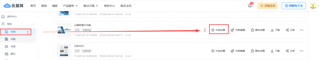 點擊【文檔】,找到對應的書籍,點擊【外觀設置】打開