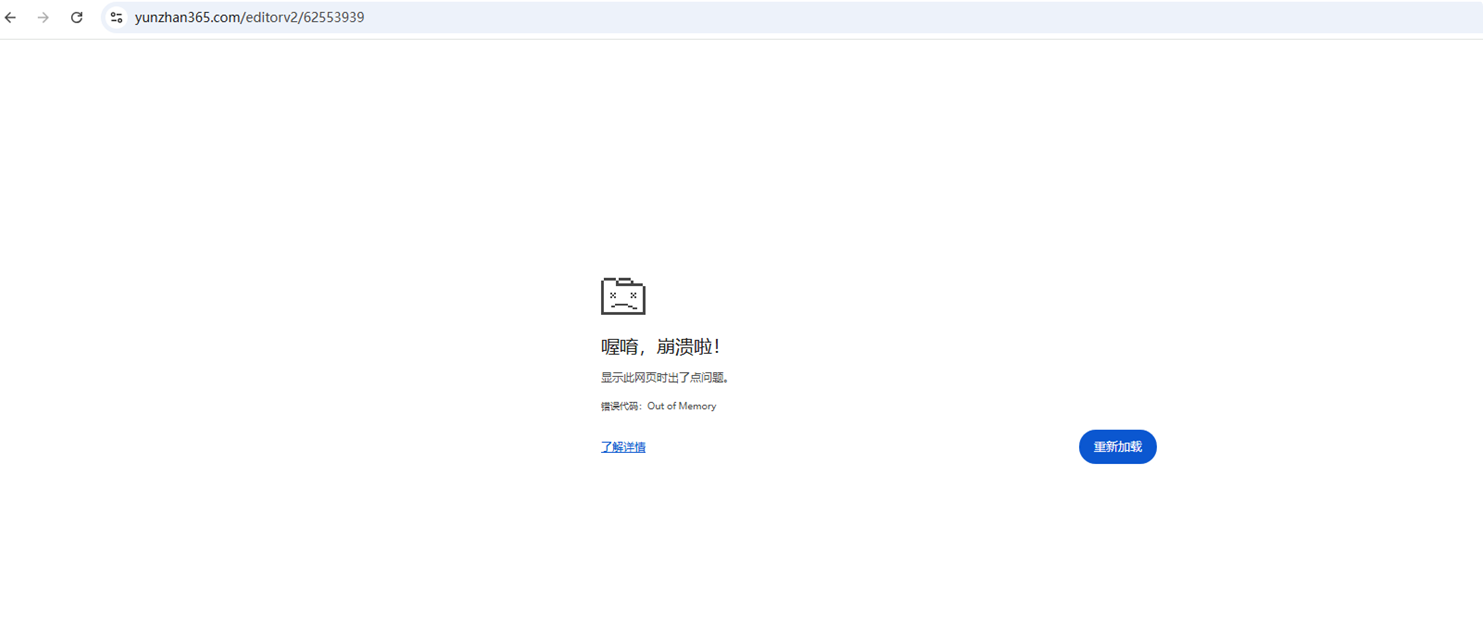 在使用編輯器過程中,瀏覽器經(jīng)常出現(xiàn)崩潰的情況,原因可能是您電腦的內(nèi)存不足導(dǎo)致的??蓞⒖枷路降膸追N解決辦法解決。