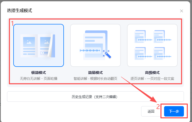 極簡(jiǎn)模式:無(wú)旁白、無(wú)解說(shuō),畫(huà)面按頁(yè)面順序依次自動(dòng)輪播。