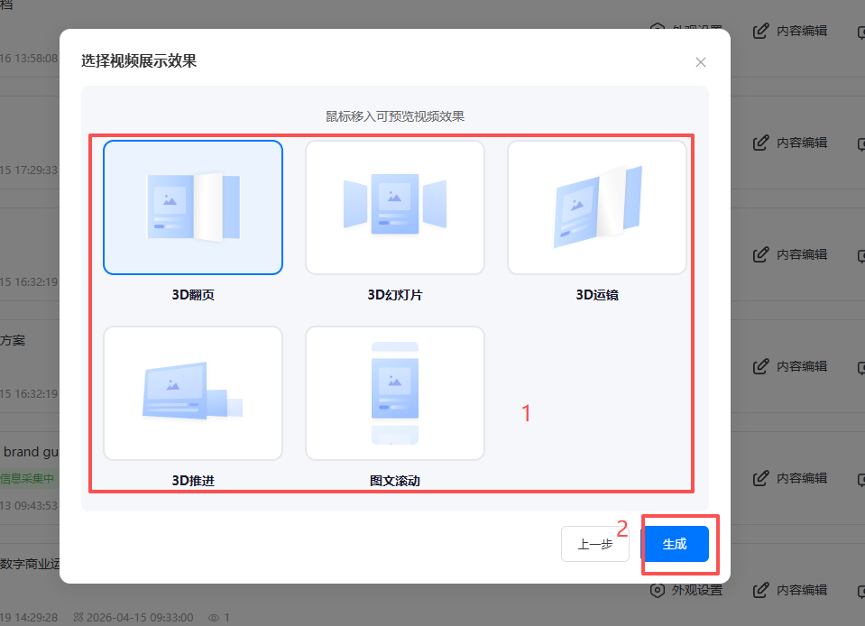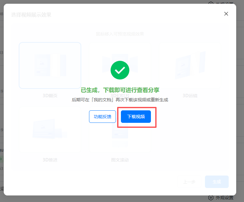 (4)選擇視頻展示效果,然后點(diǎn)擊【生成】。