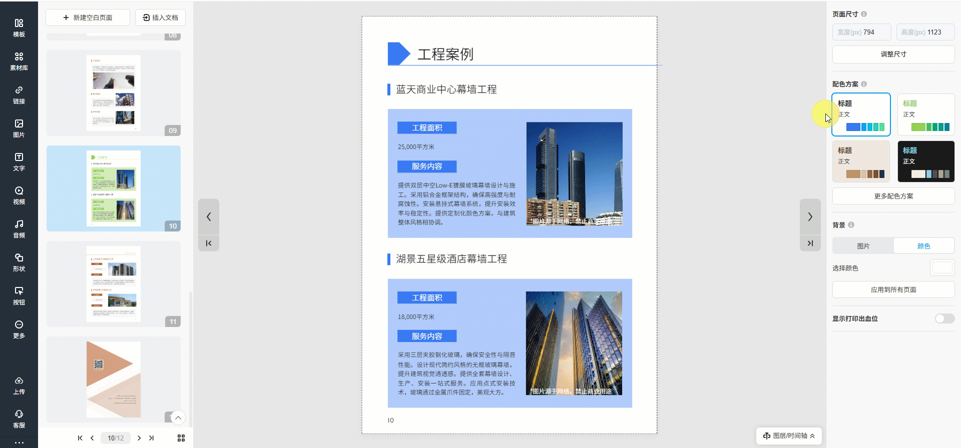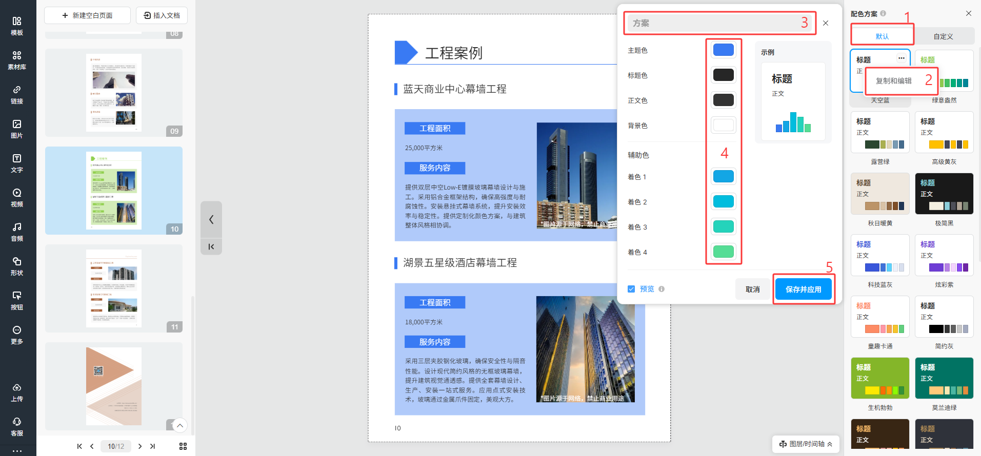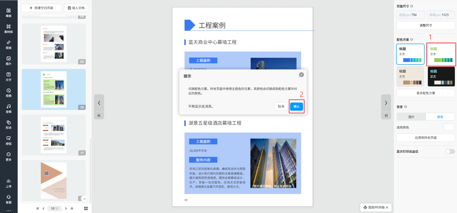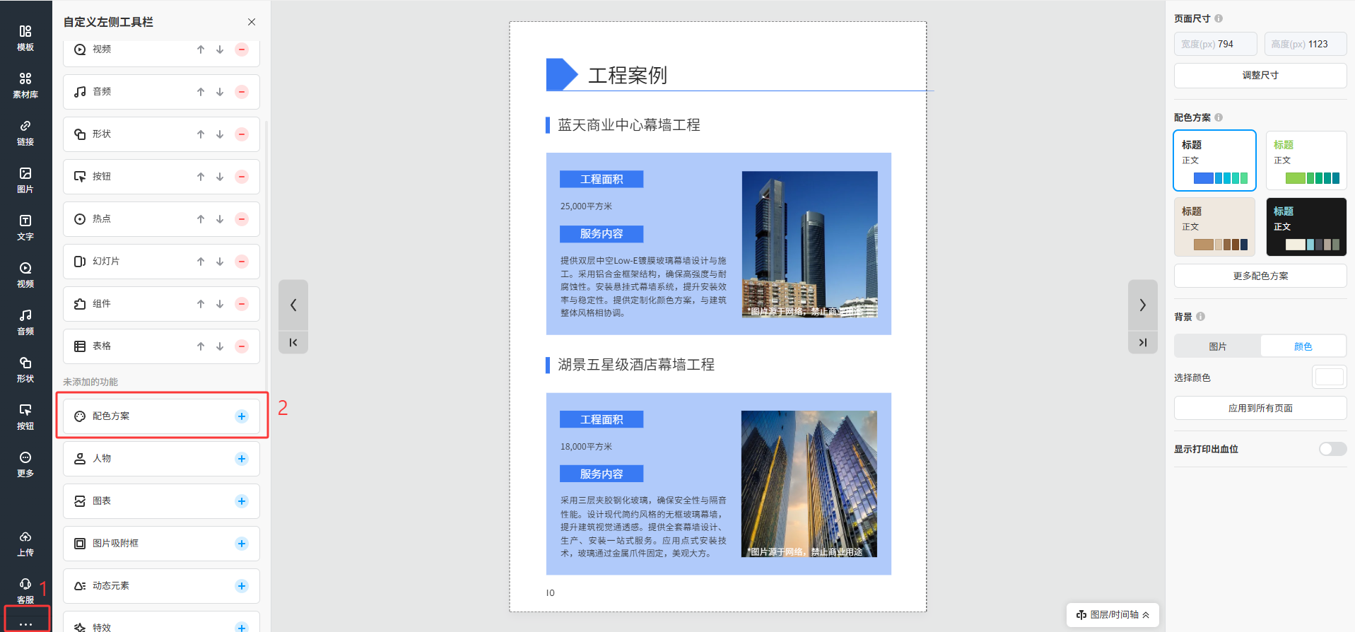 在頁(yè)面編輯器中, 配色方案幫助您快速打造一致且專業(yè)的翻頁(yè)書外觀。