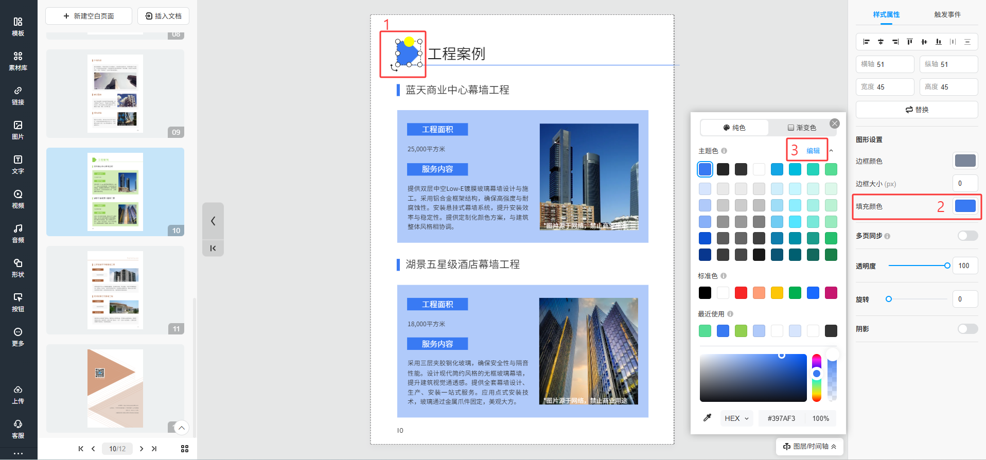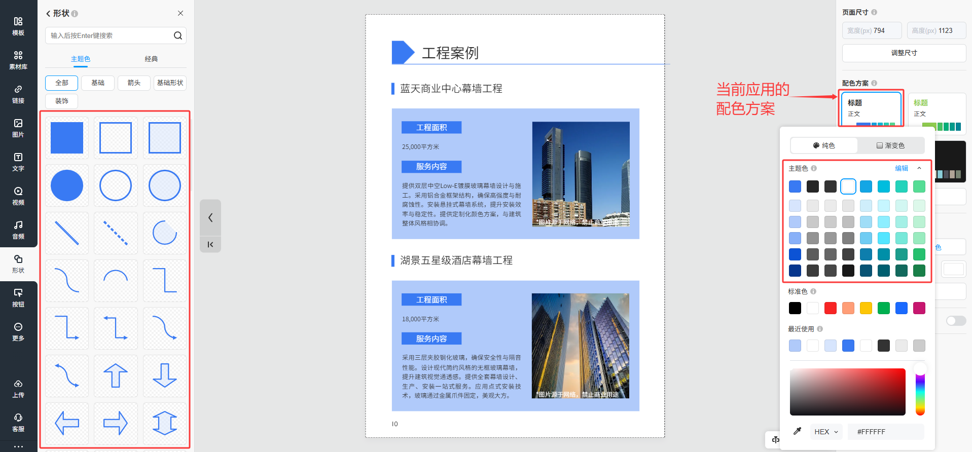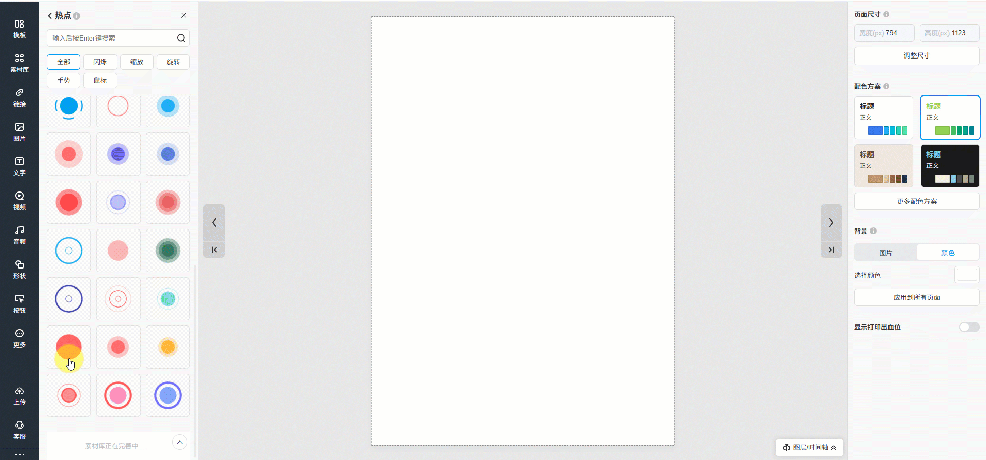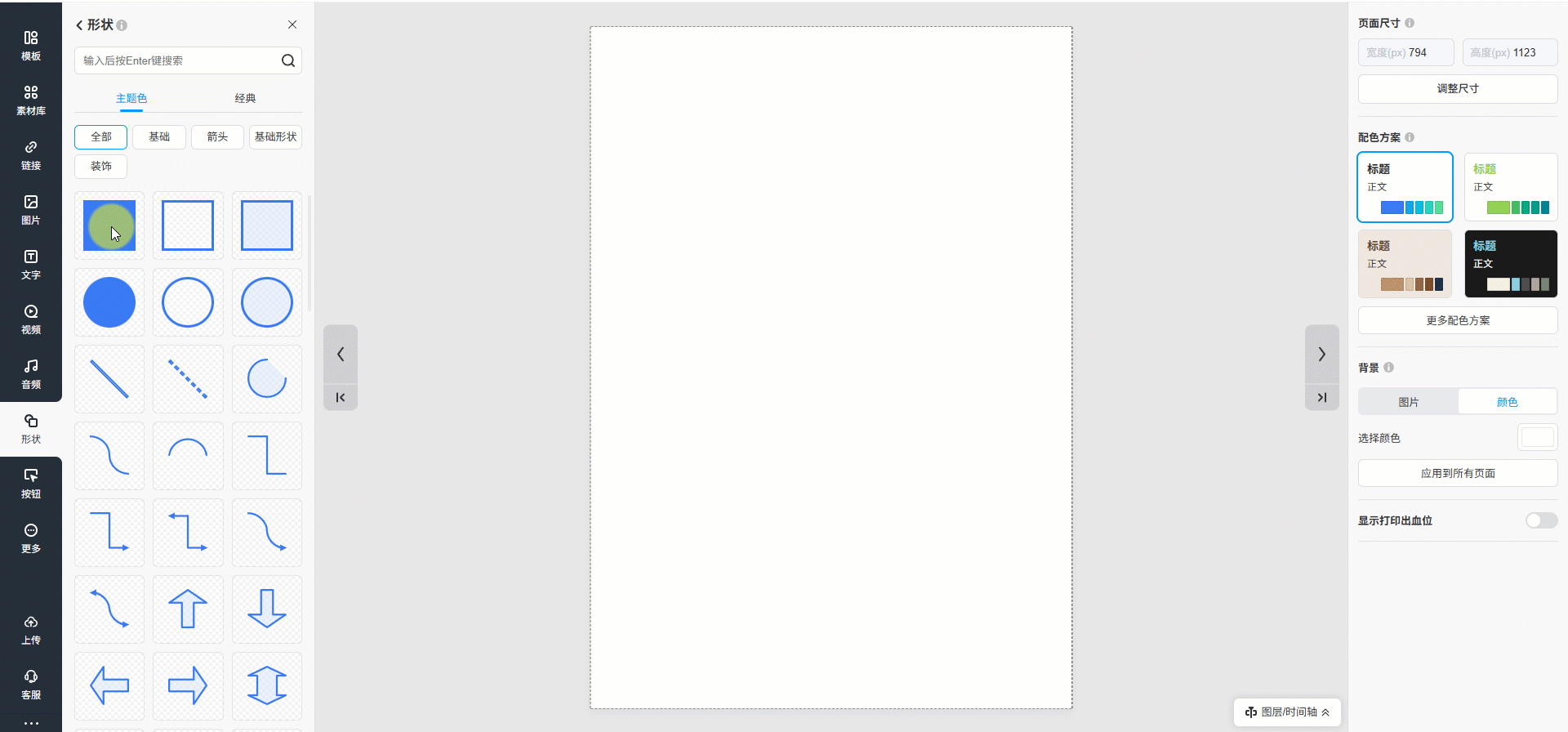 對(duì)于這些元素,先將元素添加到畫布 -> 打開顏色設(shè)置 -> 在調(diào)色板主題色區(qū)域中選擇一個(gè)顏色。