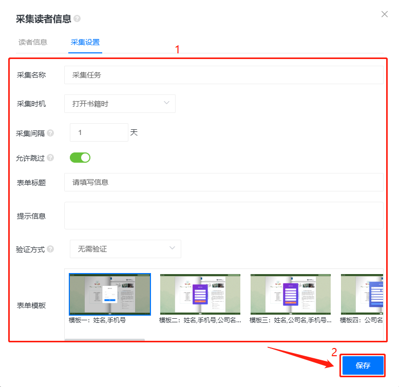 允許跳過:允許讀者不填寫信息,直接跳過查閱書本。