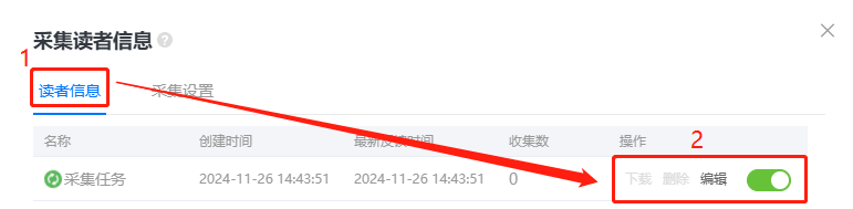 采集的數(shù)據(jù)是實(shí)時的,可以根據(jù)操作步驟的第一步打開采集讀者信息,點(diǎn)擊【讀者信息】查看采集到的數(shù)據(jù),支持下載數(shù)據(jù),刪除或者暫停采集任務(wù)。