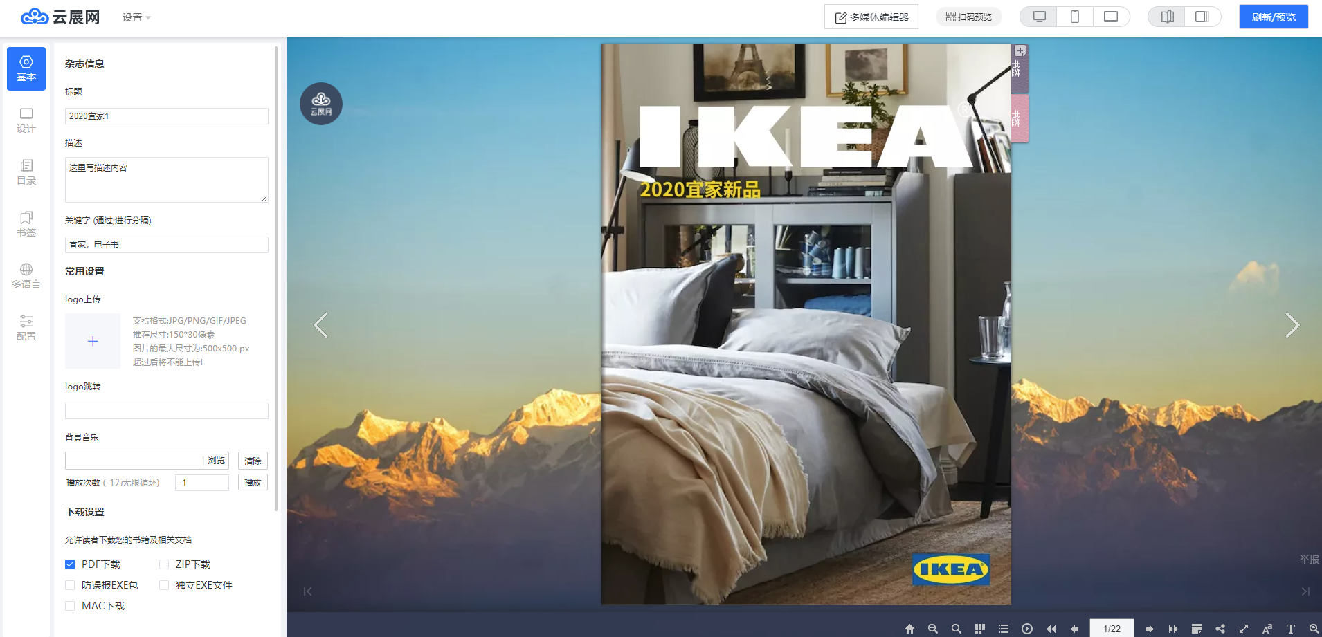 管理、修改電子雜志設(shè)置 創(chuàng)建雜志上傳審核完畢之后,需要更改雜志設(shè)置,可以在登陸賬號(hào)后,鼠標(biāo)放在云展網(wǎng)右上角的頭像處,點(diǎn)擊“我的文檔”,就能見(jiàn)到自己上傳的書本了。 下面請(qǐng)看下紅框中的編輯按鈕,就是用于修改書本配置的: 編輯雜志:上傳好的雜志可以通過(guò)編輯雜志更改各項(xiàng)功能,同步預(yù)覽各種設(shè)置,更改雜志下載格式以及切割功能。具體功能請(qǐng)看編輯雜志功能介紹。