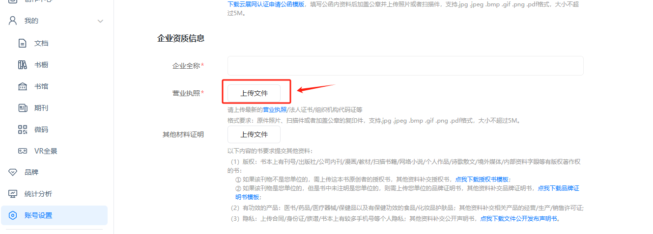 2) 上傳營業(yè)執(zhí)照/組織機(jī)構(gòu)代碼證/法人證書等