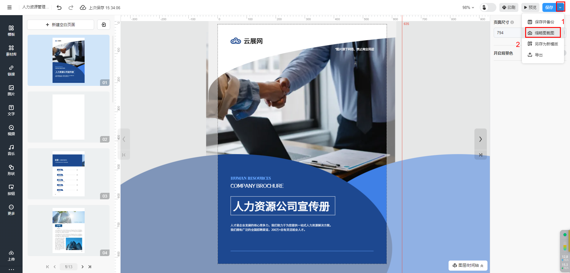 點(diǎn)擊保存右側(cè)下拉鍵,選擇【縮略圖截圖】。
