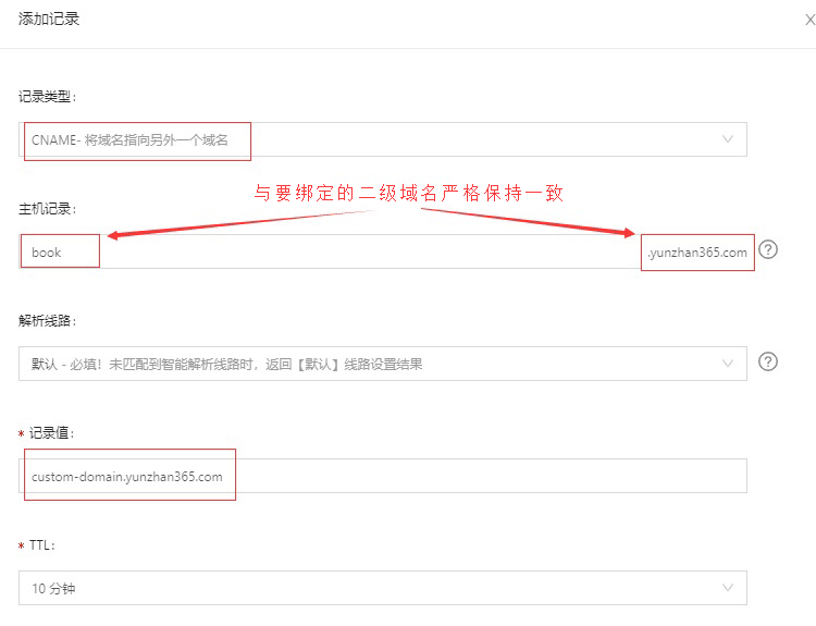 2)域名解析,添加一個記錄指向云展網(wǎng):custom-domain.yunzhan365.com。
