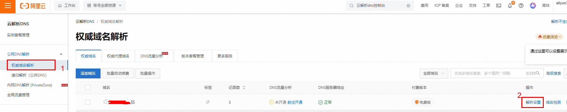 1)登錄阿里云網(wǎng)站,打開云解析DNS控制臺。