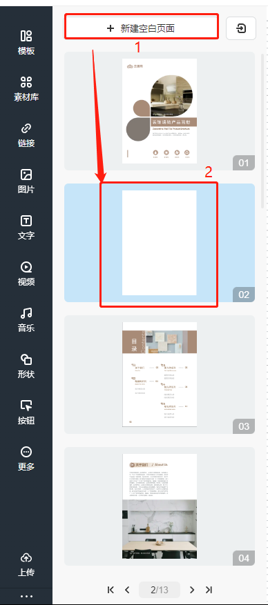 點(diǎn)擊【新建空白頁面】就會插入一個(gè)空白頁。