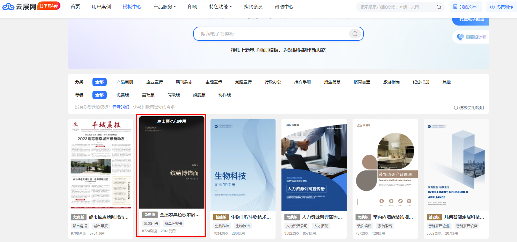 如果您沒有設(shè)計好的文檔,要如何快速做好一本電子畫冊呢?選擇云展網(wǎng)模板中心心儀模板,替換文字圖片,便可最快,最省心的做好一本電子畫冊了。
