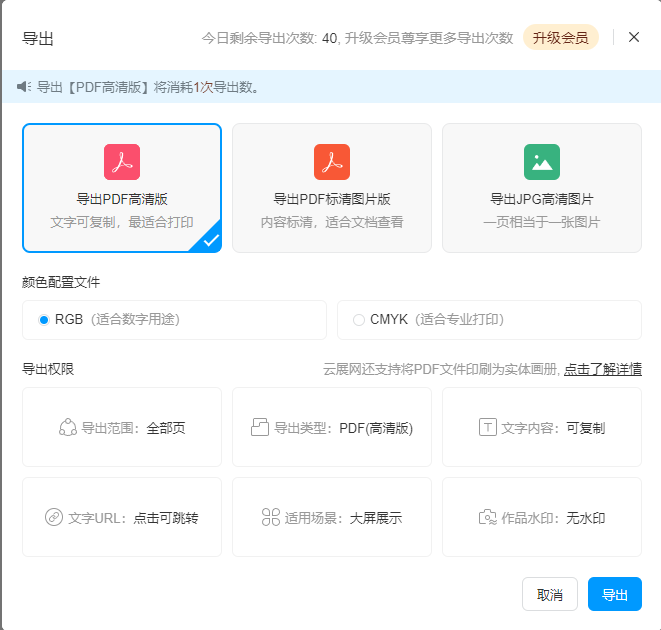 點擊【導(dǎo)出】,可以導(dǎo)出PDF或者圖片文件用于打印。