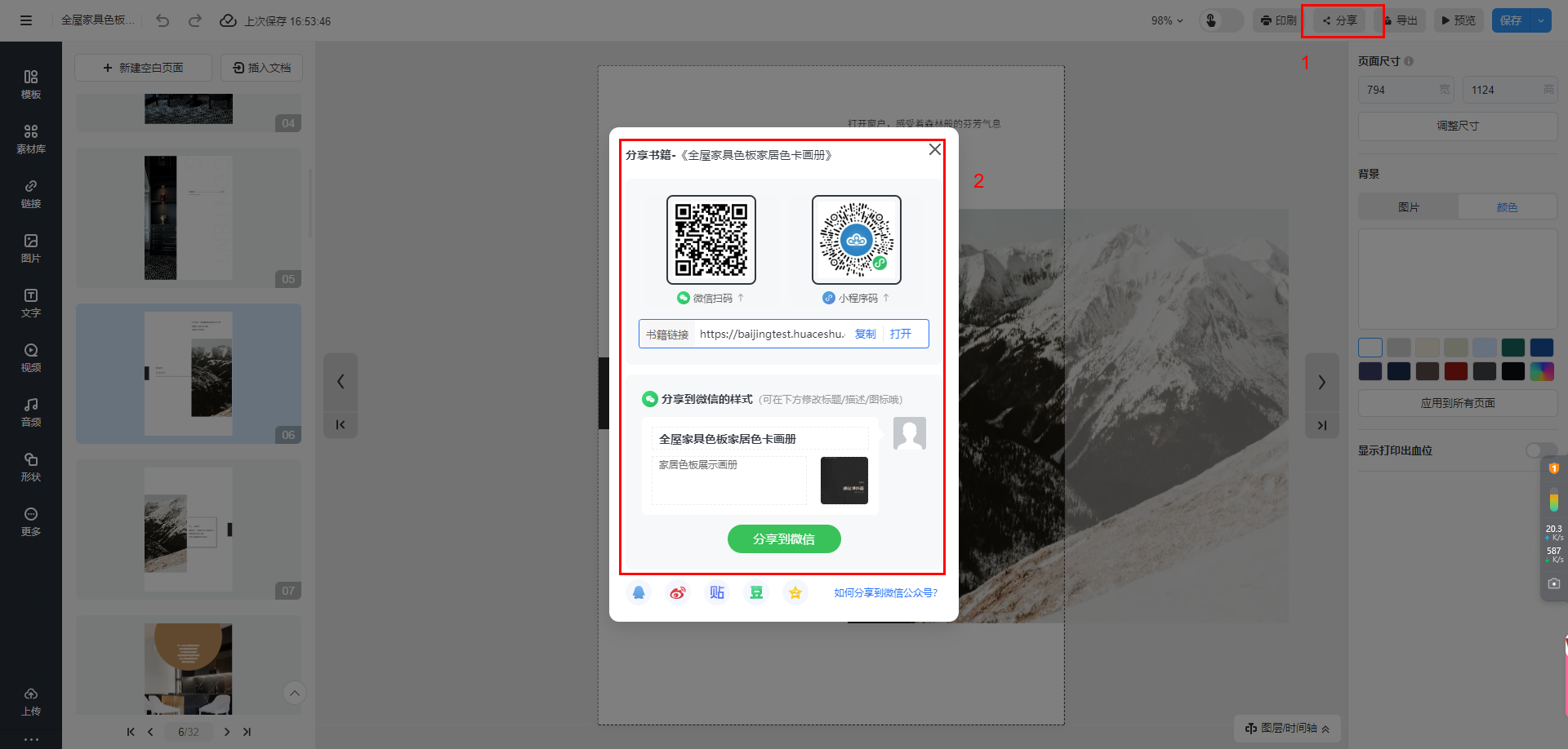 點擊【分享】獲取書本鏈接或者掃描二維碼進行分享發(fā)布。