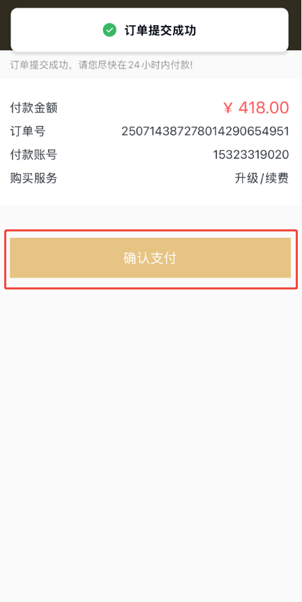 選擇需要購買的會(huì)員版本,輸入購買時(shí)效,付款金額確認(rèn)無誤后,點(diǎn)擊【提交訂單】,提交之后點(diǎn)擊【確認(rèn)支付】付款即可,付款后系統(tǒng)會(huì)自動(dòng)開通,如需對(duì)公轉(zhuǎn)賬需要先聯(lián)系客服把付款單位名稱跟云展網(wǎng)登錄手機(jī)號(hào)發(fā)給客服備注,到賬后開通。