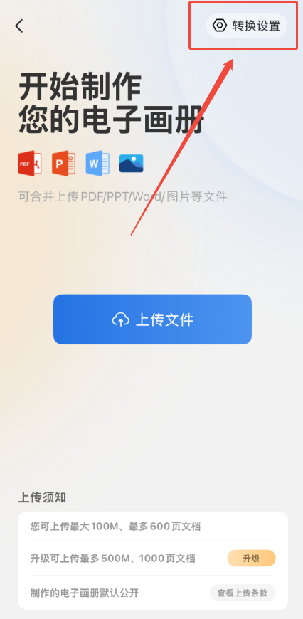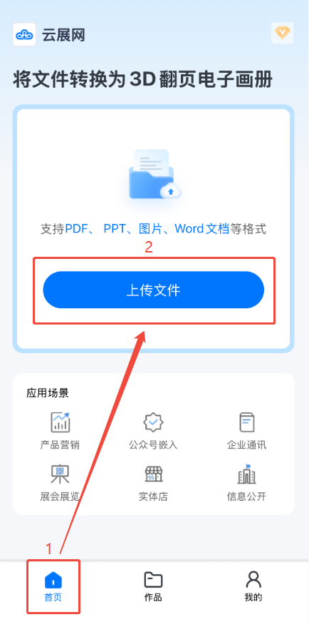 點(diǎn)擊【首頁(yè)】,然后點(diǎn)擊【上傳文件】,打開(kāi)上傳界面。