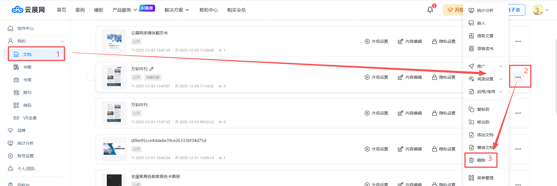 在【文檔】頁面,選擇需刪除的電子書,點擊【…】,選擇【刪除】即可。