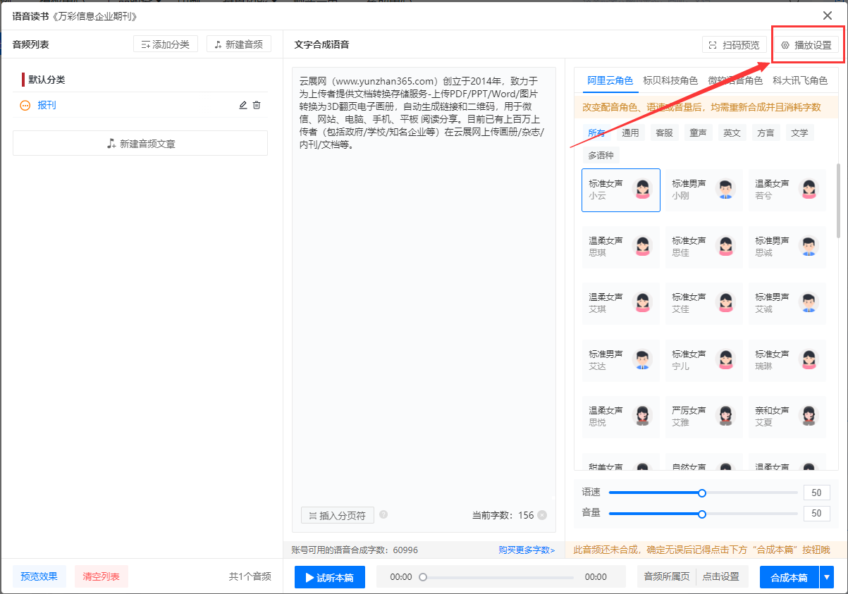 2、設置語音播放設置