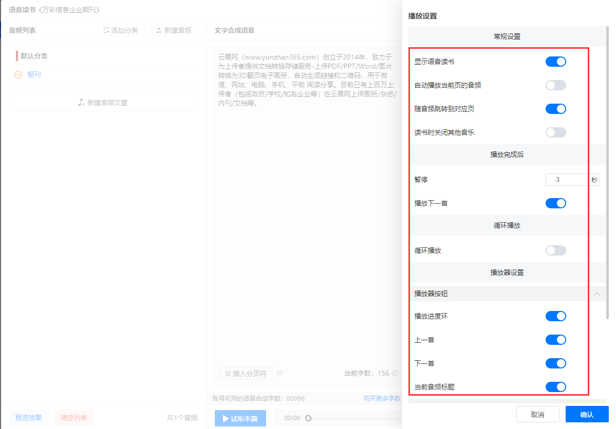 語音讀書的播放設置