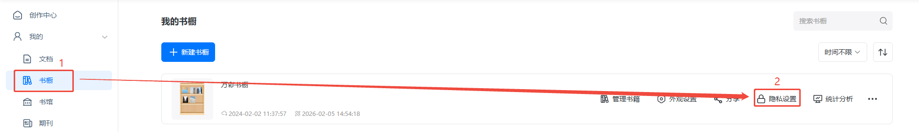 點(diǎn)進(jìn)【文檔】/【書櫥】,找到對應(yīng)電子畫冊/書櫥,然后點(diǎn)擊【隱私設(shè)置】。