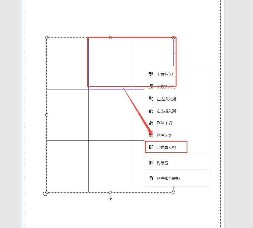 如果想要合并單元格,可以先選中整個表格,然后按住鍵盤上的ctrl鍵,單擊鼠標(biāo)左鍵選擇單元格,被選中的單元格周圍會有一圈紫色的,最后右鍵選擇【合并單元格】即可合并。