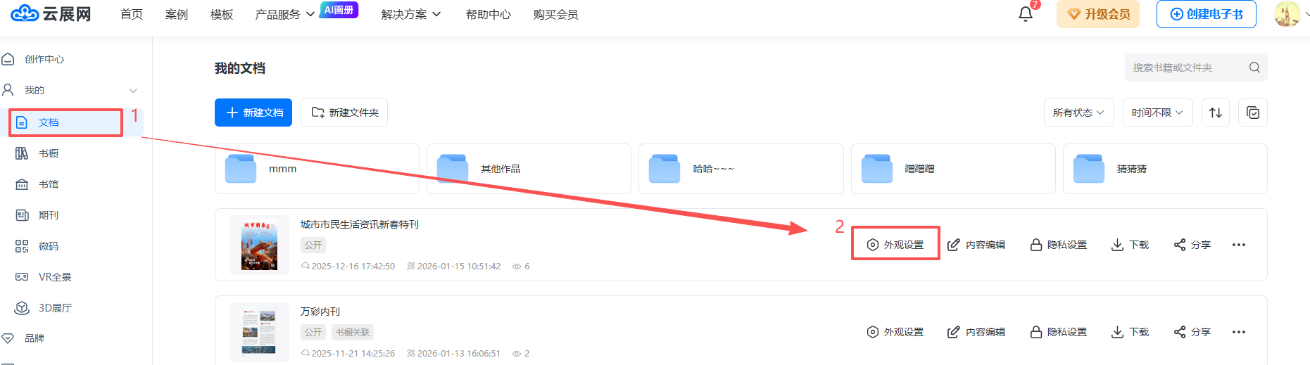 在【文檔】頁(yè)面,選擇你要添加工具欄頁(yè)碼的電子書,打開【外觀設(shè)置】界面。