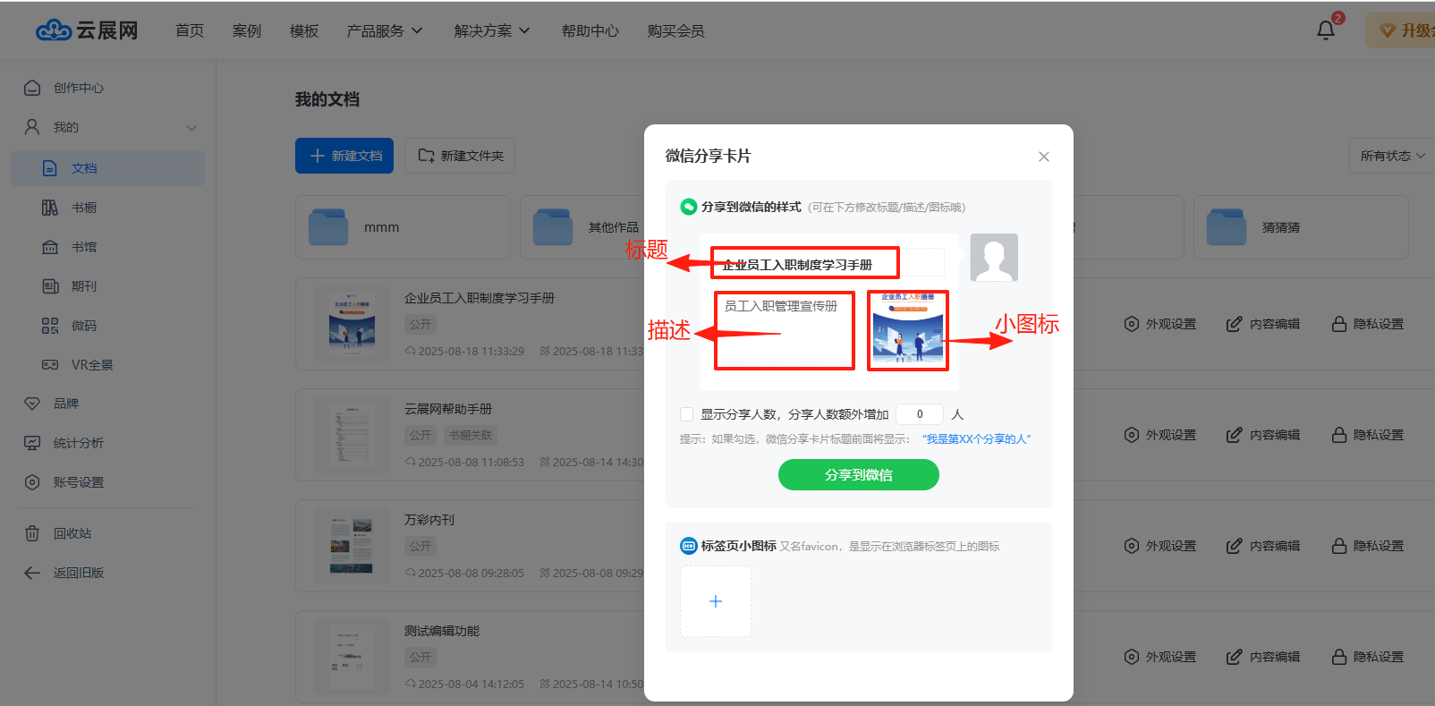 翻頁電子書制作 修改云展網(wǎng)雜志和書櫥在微信顯示的標(biāo)題、小圖標(biāo)和描述