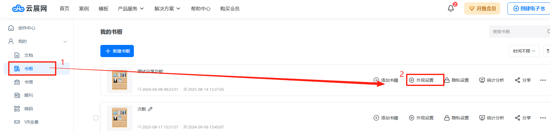 在【書櫥】頁面 ,點(diǎn)擊【外觀設(shè)置】進(jìn)入