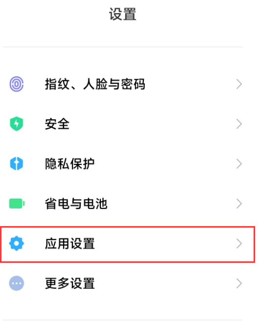 1.打開手機(jī)設(shè)置,點(diǎn)擊“應(yīng)用設(shè)置”