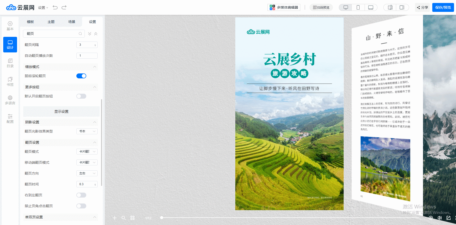 點擊【設(shè)計】中的【設(shè)置】,找到【翻頁設(shè)置】,根據(jù)你的需求選擇翻頁的模式、方向、時間等設(shè)置。