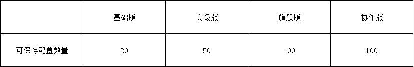 各會員版本可保存配置數(shù)量: