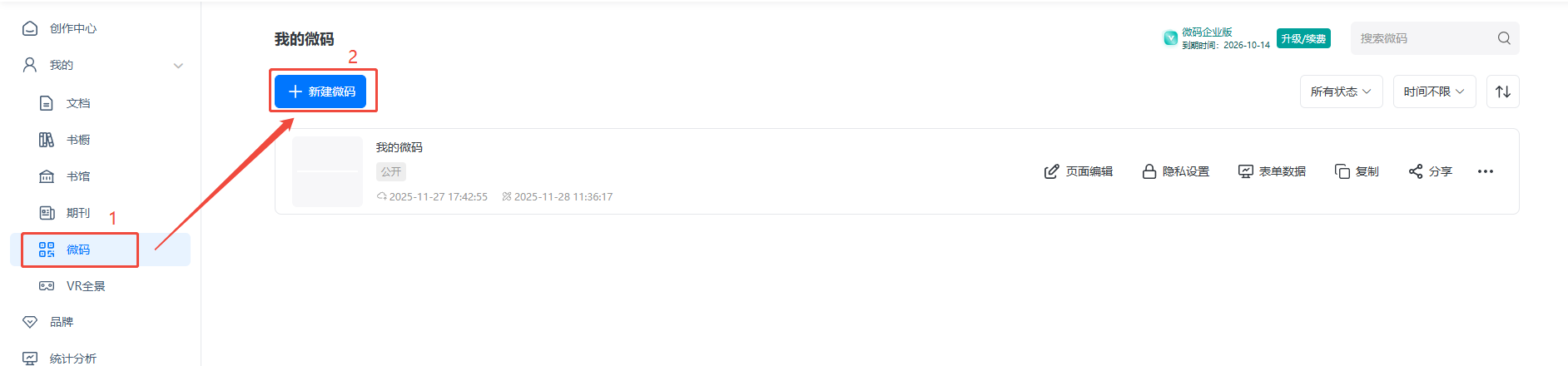 點進【微碼】,然后點擊【創(chuàng)建微碼】,選擇【從空白頁創(chuàng)建】或者選擇【模板套用編輯】。