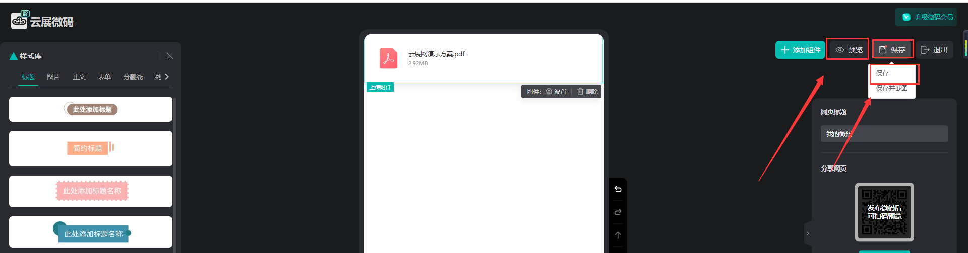 點擊右邊的【保存】圖標(biāo)保存后,點擊【預(yù)覽】查看效果,讀者點擊附件可以下載查看