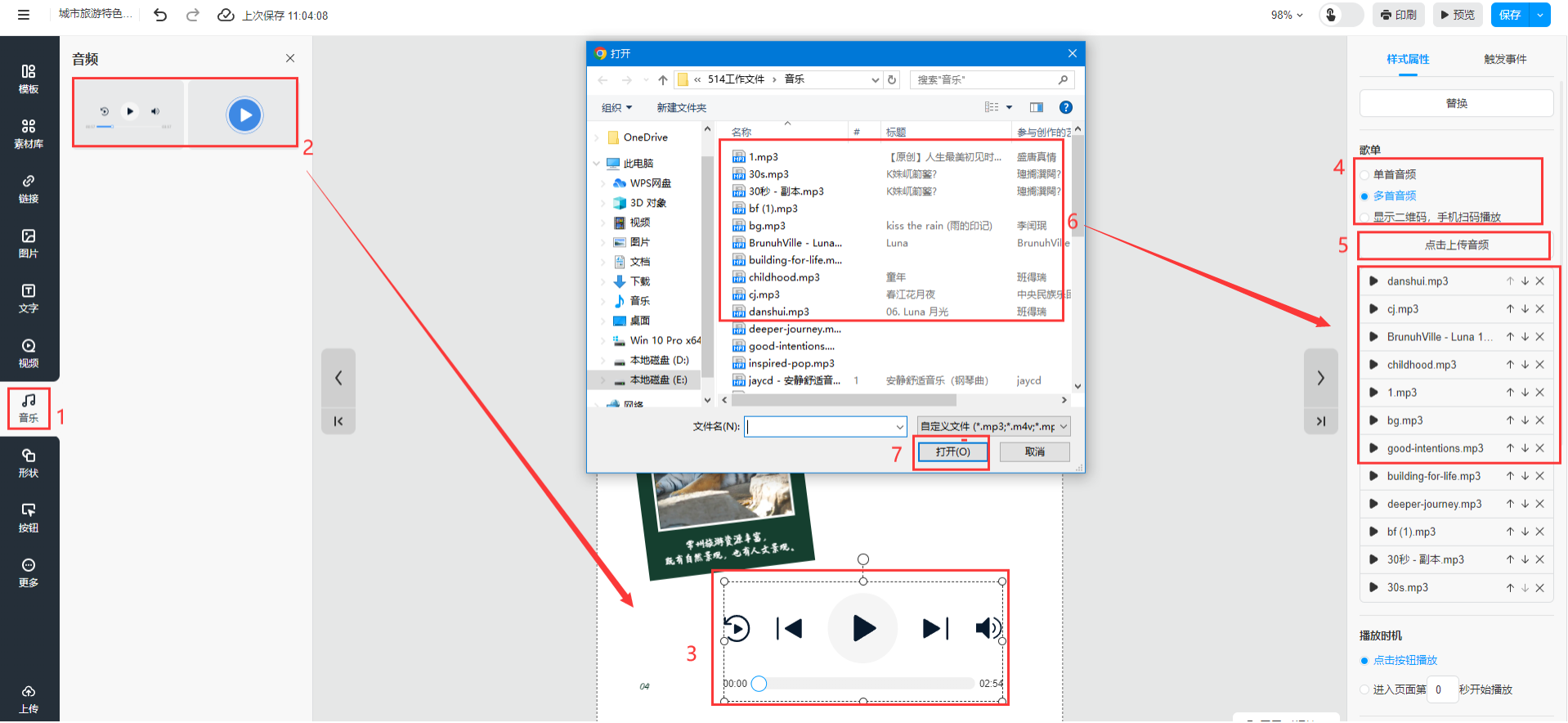 • 多首音頻:勾選后,能上傳多首音樂,形成歌單播放。你也可以調(diào)整音樂播放順序。