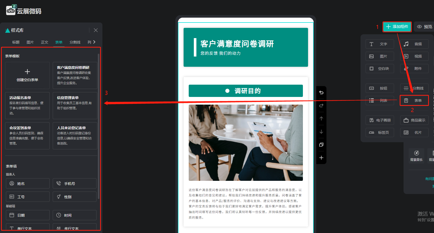 此功能是指可以微碼上添加表單,讓讀者填寫,了解用戶信息,并且后臺還可以下載收集到的表單數(shù)據(jù)。