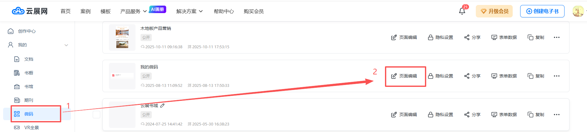 在【微碼】頁面,點擊需要操作的微碼的【頁面編輯】打開。