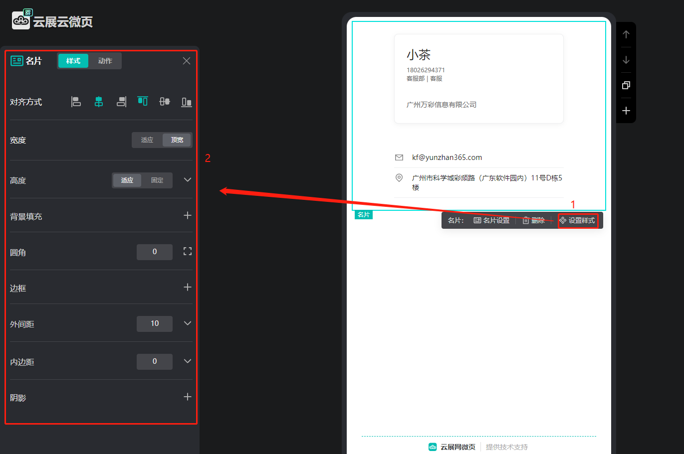 點擊【設(shè)置樣式】,在左側(cè)設(shè)置名片樣式。