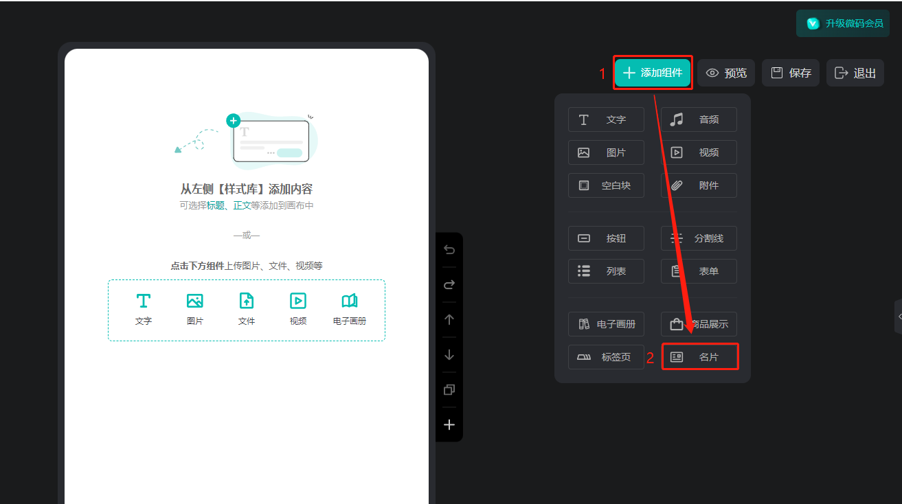 點擊【添加組件】,選擇【名片】。