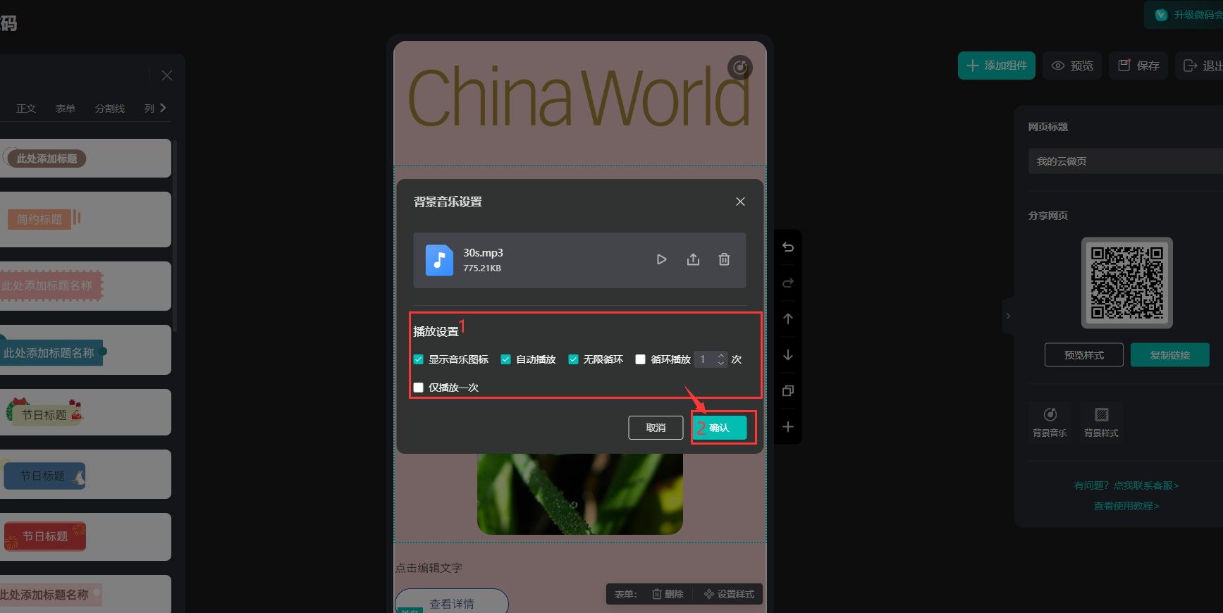 【自動(dòng)播放】:打開微碼自動(dòng)播放背景音樂(lè)